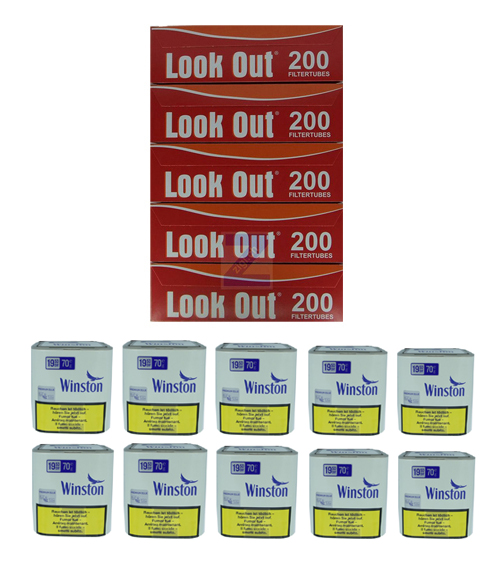 10 Dosen Winston à 70 g mit 1000 Filterhülsen LOOK OUT