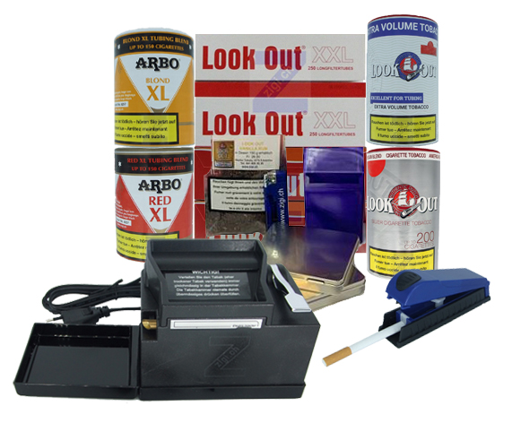 Im Set ist alles dabei: 1 Zigarettenfertiger ZIGI-MATIC mit genauer Anleitung, 5 Sorten Volumen-Tabak (die Beliebtesten), Filterhülsen, Zigaretten-Box/Etuis, 1 nachfüllbares ZIGI-Z-Premium-Feuerzeug und eine Zigi-Fertigungsunterlage aus PVC.
