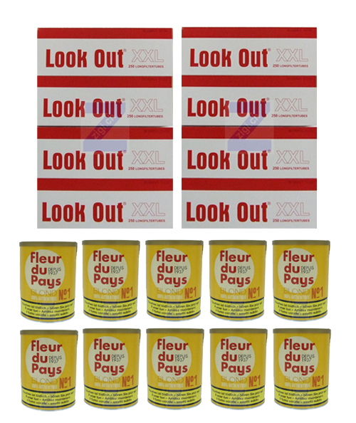 10 boîtes Fleur du Pays No. 1 160 g avec 2000 tubes à cigarettes doubles filtres LOOK OUT XXL