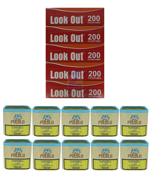 10 boîtes de Pueblo de 100 g avec 1000 tubes à cigarettes LOOK OUT