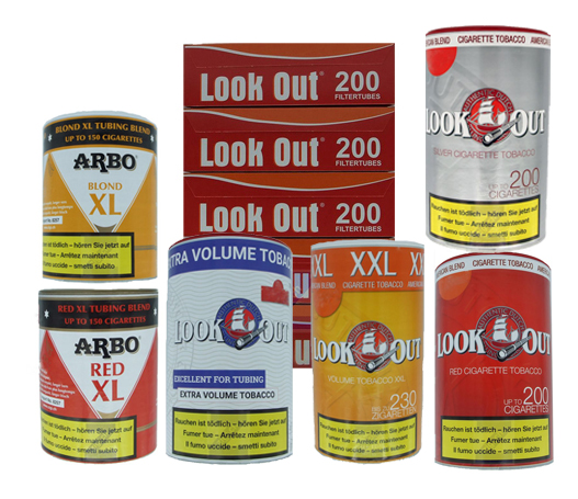 1 scatola di tabacco volumetrico*: ARBO Blond XL, ARBO RED XL, LOOK OUT EXTRA VOLUME, LOOK OUT SILVER, LOOK OUT RED e LOOK OUT XXL e 1000 tubi di sigarette LOOK OUT con carta extra-sottile. Ciò corrisponde a Fr. 2.70 per pacchetto di 20 sigarette.